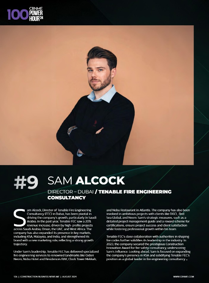 We’re thrilled to announce that Sam Alcock, our Director – Dubai, has been featured in Construction Business News Middle East’s Power 100.